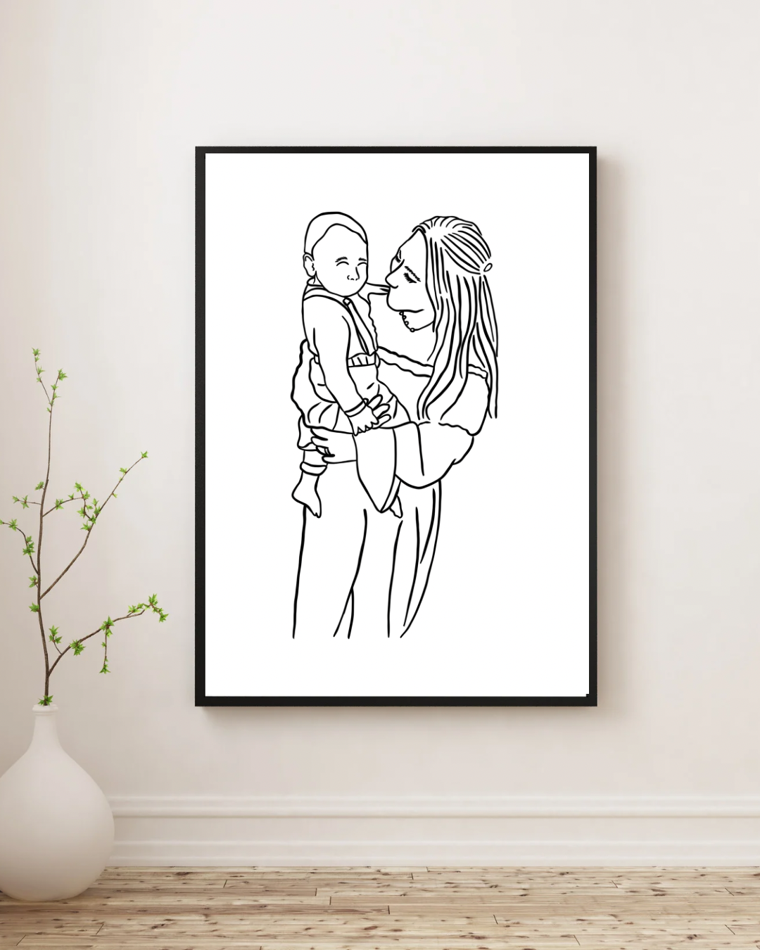 Deze lijntekening wordt op maat gemaakt en in samenspraak met jou gecreëerd! Stuur een mail met een foto naar info@moonlinestudio.nl, en samen realiseren we een prachtig product.